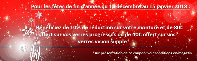 Bénéficiez d'une offre exceptionnelle, sur présentation de ce coupon, -10% sur le prix de votre monture et 80€ de remise sur vos verres progressifs VARILUX ou 40€ sur vos verres ESSILOR vision simple !
